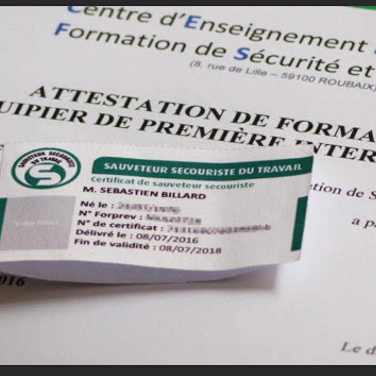 • Attestation de formation et certificat de Sauveteur Secouriste du Travail